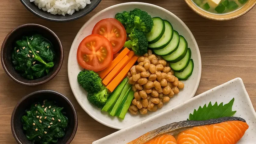 U podstaw tradycyjnej diety japońskiej leży zasada prostoty, świeżości i równowagi. Japończycy od wieków kierują się zasadą shun, która oznacza spożywanie produktów w szczycie ich sezonu, kiedy są najsmaczniejsze i najbogatsze w składniki odżywcze. Posiłki są komponowane tak, by były zrównoważone nie tylko pod względem odżywczym, ale i estetycznym. Stosuje się regułę pięciu kolorów (go shiki), pięciu smaków (go mi) i pięciu metod przygotowania (go ho), co naturalnie prowadzi do różnorodności na talerzu.